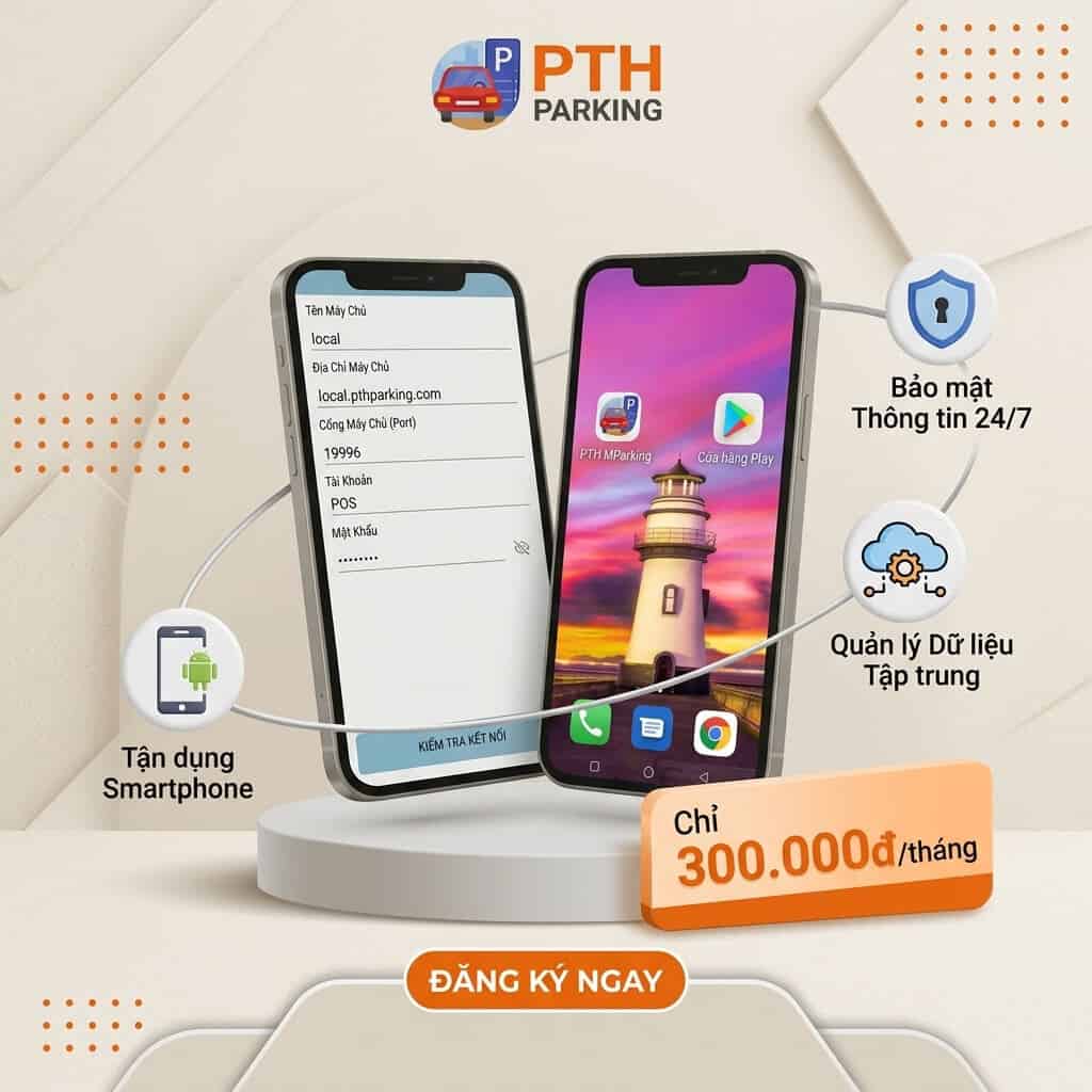 Phần mềm giữ xe trên điện thoại PTH MParking do thương hiệu PTH Parking phát triển là giải pháp chuyển đổi số cho các bãi đỗ xe vừa và nhỏ. Ứng dụng biến smartphone thành thiết bị quét mã và nhận diện biển số xe thông minh mà mà không cần lắp đặt bốt gác cồng kềnh. Đây được xem là giải pháp quản lý tinh gọn, hoặc là bước đệm tối ưu về chi phí trước khi chủ đầu tư quyết định nâng cấp lên một hệ thống giữ xe thông minh toàn diện cho bãi đỗ xe quy mô lớn. Chi phí duy trì chỉ từ 300.000 VNĐ/tháng (bản Cloud) hoặc thanh toán 1 lần (bản Server nội bộ).